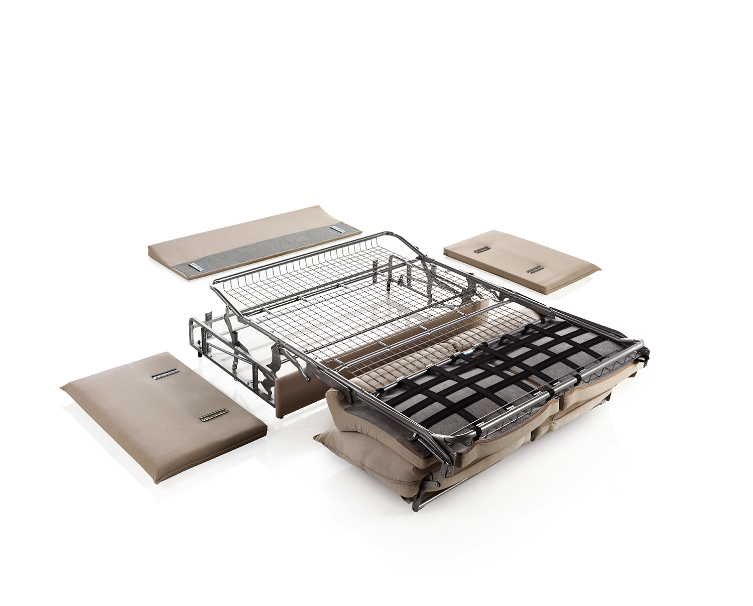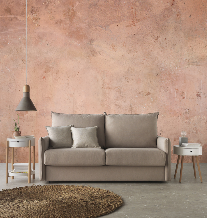 Sistema italiano. El modelo BOLTON dispone de una apertura de rotación que permite que salga una cama sin tener que quitar los cojines de asiento o respaldo. El asiento y respaldo son desenfundables. Fibra siliconada en asiento y respaldo.