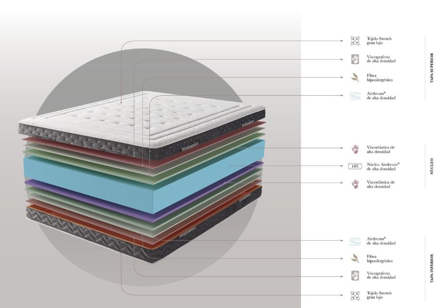 El colchón MEMORY DUO de alta gama, fabricado con viscoelástica y viscografeno de alta densidad, es uno de los colchones más confortables de nuestro catálogo.